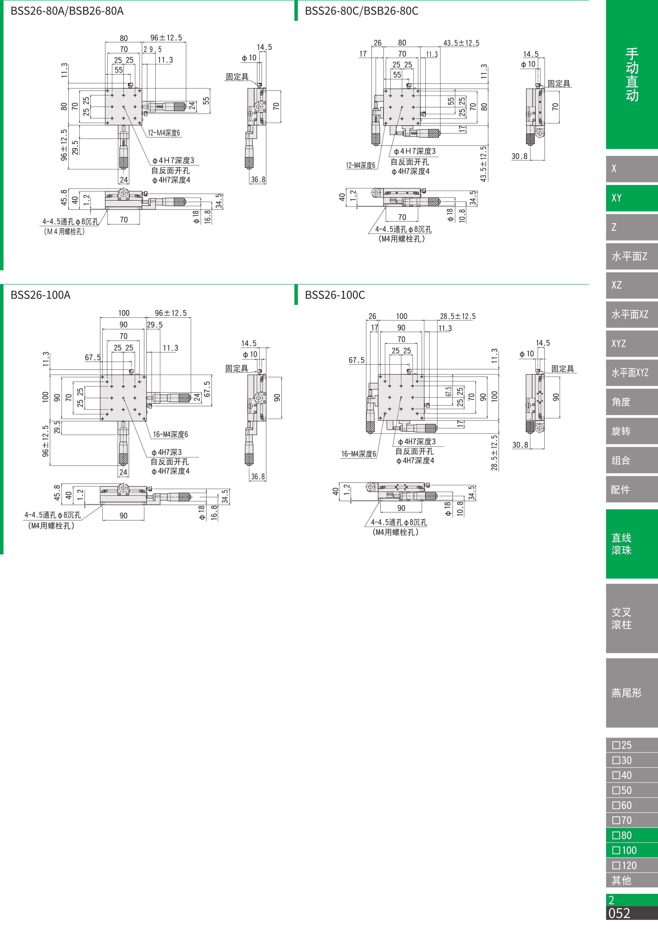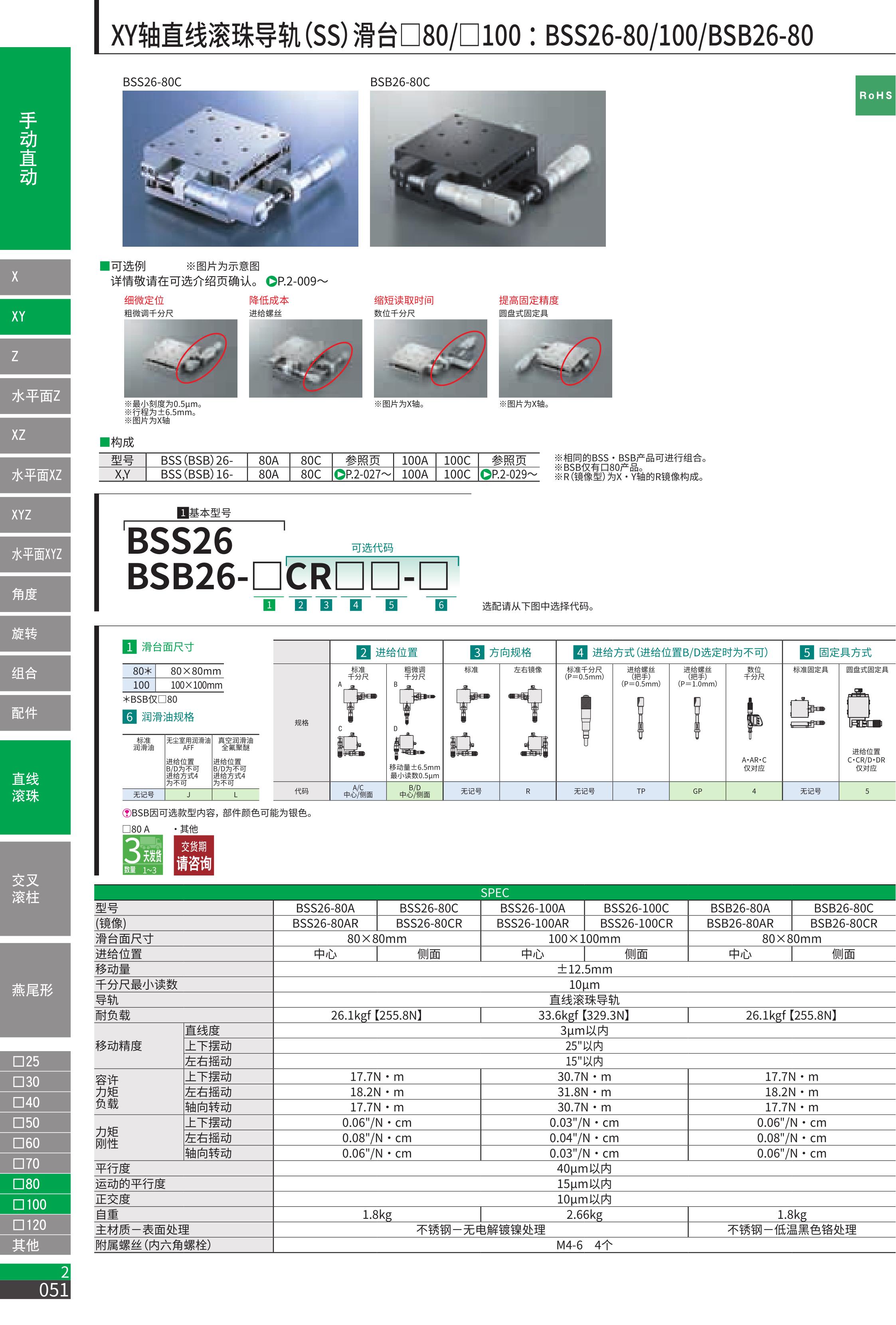 XY轴直线滚珠导轨(SS)滑台□80/□100 :BSS26-80/100/BSB26-80