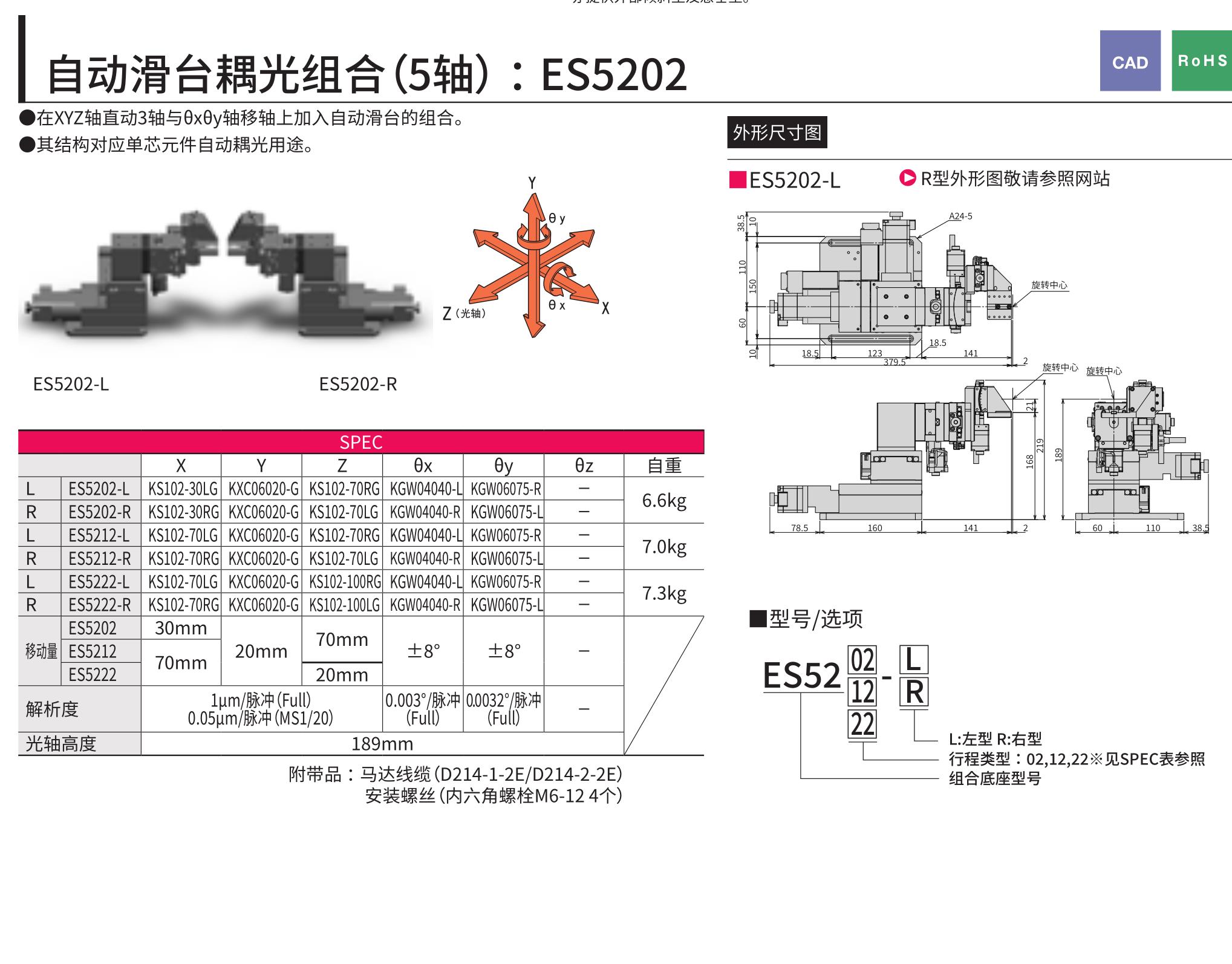 自动滑台耦光组合(5轴):ES5202